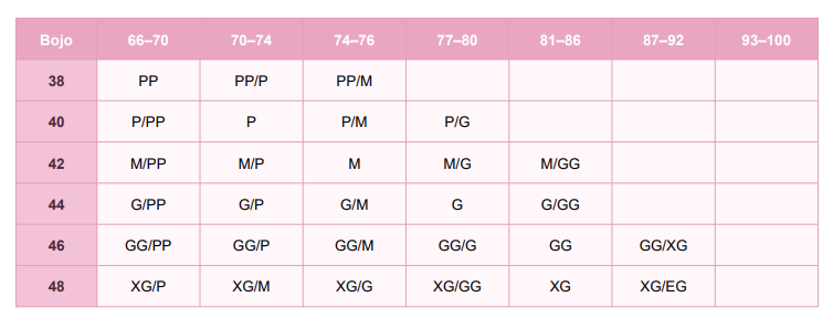 Tabela de medidas para o seu auxílio, em caso de dúvidas, por gentileza nos chame no WhatsApp clicando AQUI!
